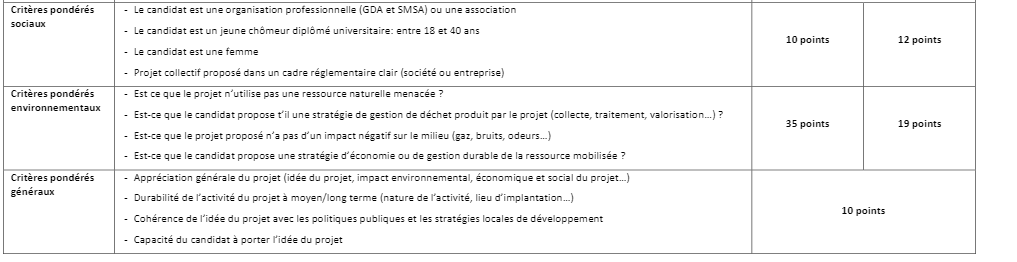 Les projets seront évalués sur la base d’un ensemble de critères, dont certains sont éliminatoires. Ces critères sont présentés dans le tableau suivant: