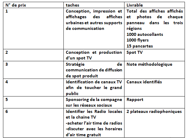 Le calendrier estimatif des actions s’étend entre 15 février et le 30 juin 2021. le calendrier de chaque out put est indiqué comme suit :