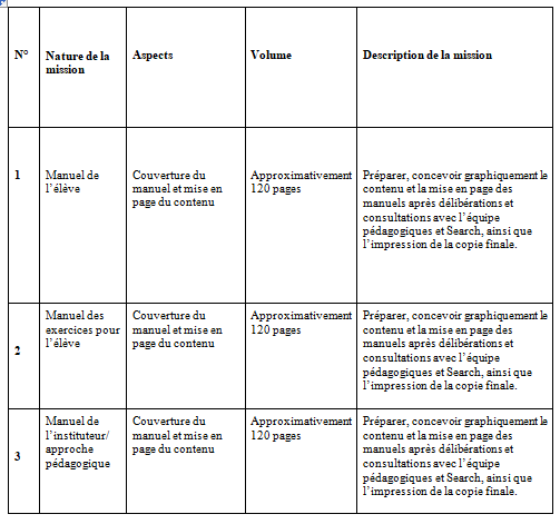 L’objectif principal de cet appel à propositions est d’inviter des prestataires de services qualifiés et expérimentés à soumettre des propositions à Search pour produire des bandes dessinées, des vidéos animés créatives et une plate-forme numérique qui fera partie du nouveau programme d’éducation à la paix pendant une période de sept mois à partir de la date du lancement.
