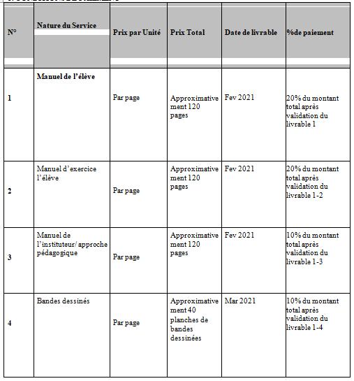La proposition sur les services demandés devra détailler les services, le plan d’exécution avec les délais et les coûts.