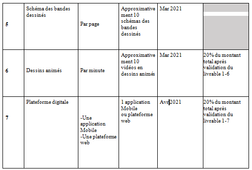 Nous tenons à noter que les paiements seront basés sur les livrables soumis par le candidat.