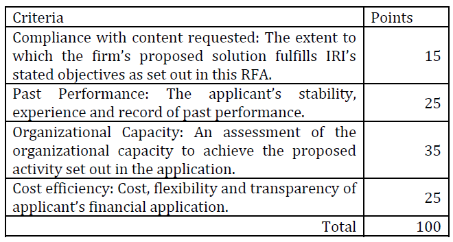 Selection is based on the following weighted criteria. Suppliers must ensure that all requested information and documentation is submitted with the bid: