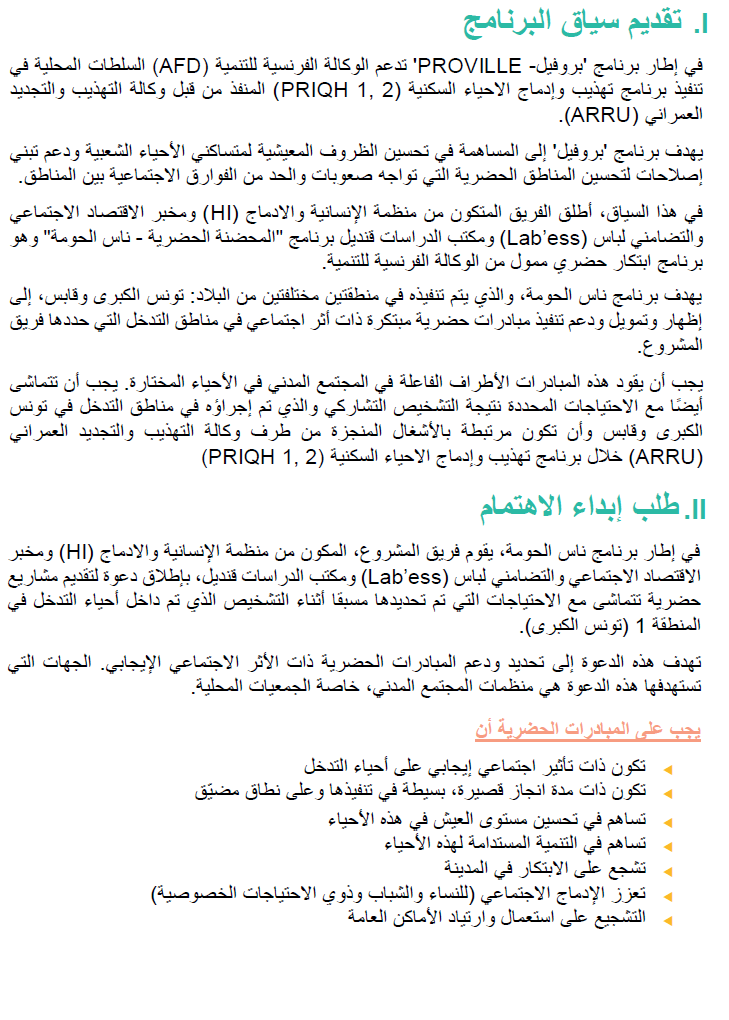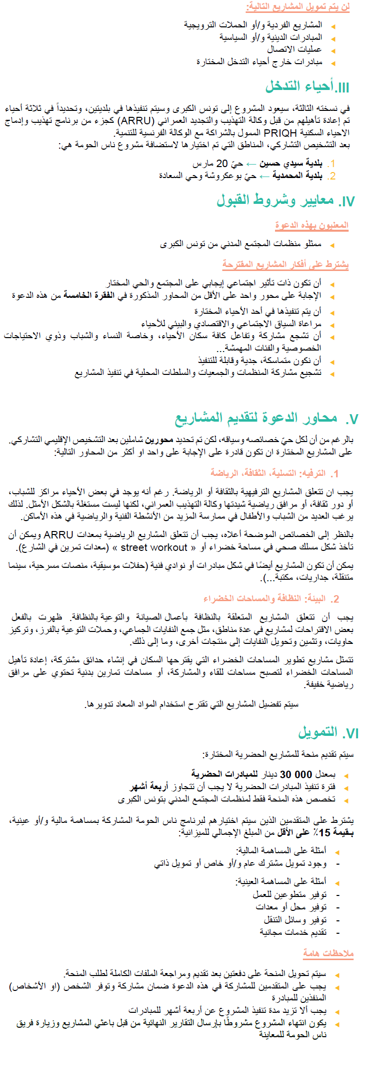 يتكون ملف هذه الدعوة لتقديم المشاريع من النص الوصفي واستمارة