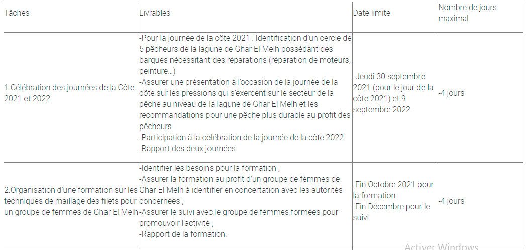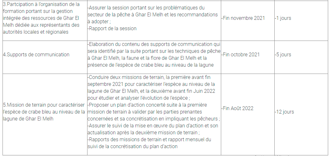 La prestation sera menée principalement au niveau la délégation de Ghar El Melh en Tunisie.