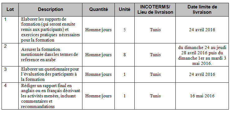 ACTED, mettant en œuvre le projet “Psychosocial emergency response for children exposed to violence in Benghazi” financé par UNICEF invite les fournisseurs de services de formation à soumettre leurs offres pour chaque lot des services décrits ci-dessous