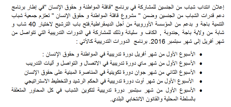 دعوة للترشّح منشور على "جمعيتي" في 8 mars 2016