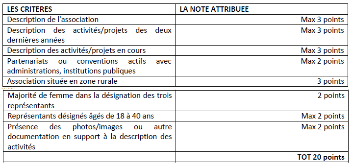 • L’association doit opérer dans l’un des domaines d’intervention cités au paragraphe précédent (développement durable, citoyenneté active, culture, jeunesse et égalité de genre), le statut de l’association constituera un paramètre de référence à ce propos.