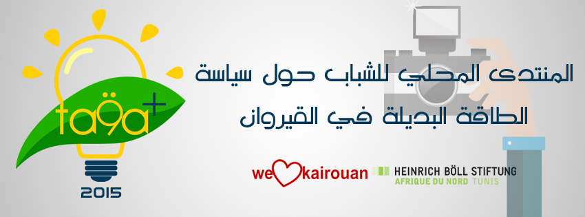 في إطار أنشطة المنتدى المحلي للشباب حول سياسة الطاقة البديلة في القيروان في دورته الثانية تحت عنوان » طاقة + » و بدعم من منظمة « هنريش بل » الألمانية تنظم جمعية نحن نحب القيروان معرض صور متعلقة بموضوع الطاقة والمياه ( الطاقة الشمسية ، الموارد الطبيعية، إلخ…) من أجل تحفيز السلط المحلية وسلط الاشراف على الإهتمام بقطاع الطاقة وحسن تسييره .