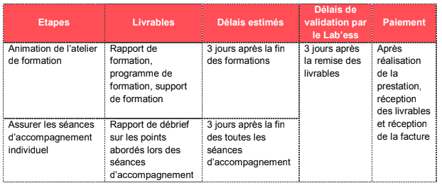 Il sera également attendu un rapport de formation, incluant une enquête de satisfaction.