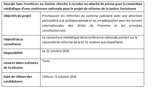 En vue de l’organisation d’une conférence dédiée à la présentation du rapport mentionné, ASF recherche un attaché de presse en vue de la couverture médiatique d’une conférence qui aura lieu le 22 octobre 2020.