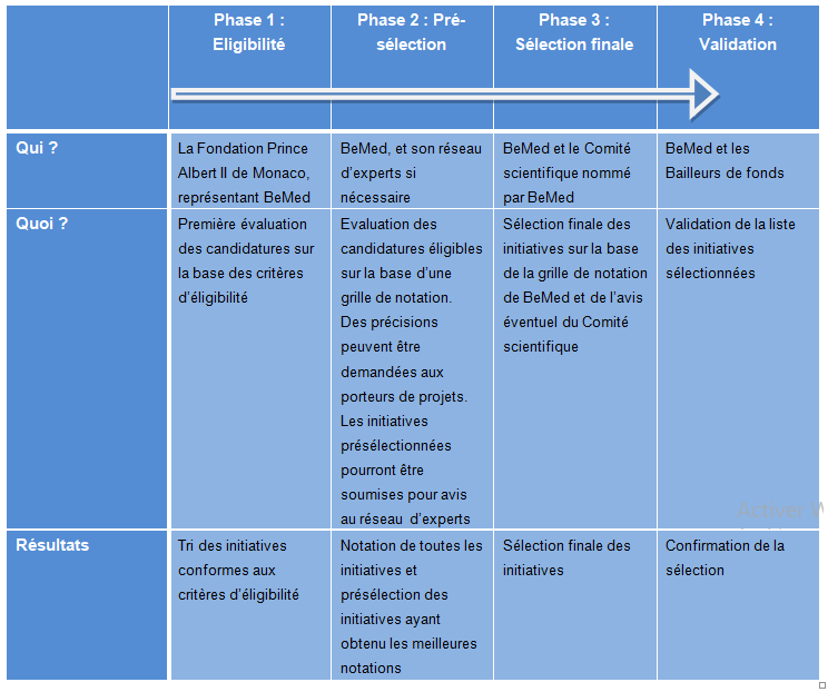 La sélection des initiatives sera réalisée en quatre étapes :