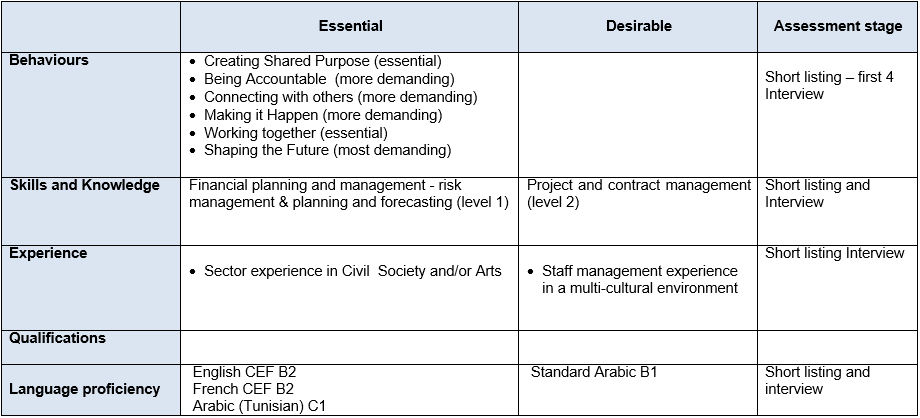 To play a leading role in achieving the British Council’s mission of building trust and creating opportunity in Tunisia, through an exciting and relevant programme of project activity and partnerships in Society and Arts. The post will manage all project business development and delivery in Society and Arts, working closely with the Country Director, Deputy Director, Head Education Programmes and the Head of English Programmes. The post will form part of the Tunisia Operations Leadership Team.