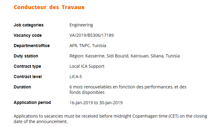 Sous la supervision directe du Chef de projet PAM, le Conducteur des Travaux sera appelé (e) à assister les fonctions de la coordination, l’attribution des tâches et les opérations quotidiennes reliées aux activités d’infrastructure.