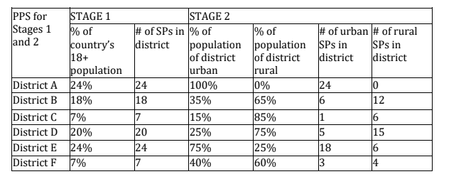Sample Sampling Plan for n=1,000 with 10 interviews per Sampling Point (SP)