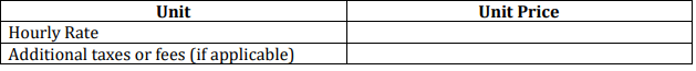 Price information should be presented as an hourly rate for tasks encompassed by the statement of work described above and can be billed in half hourly or 15-minute intervals. Invoices must include a description of the task(s) performed during the period for which time is billed.