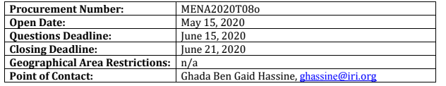 Invitation for bids (1) – IRI Retour vers les opportunités