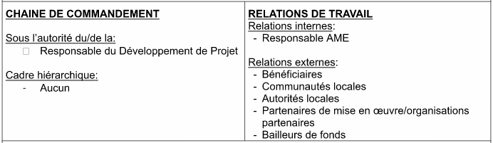 - Contribuer au développement d’outils et de méthodologies AME et traduire les outils et les méthodologies dans la langue locale selon les besoins.