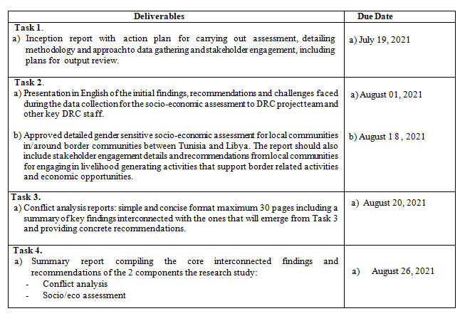 The successful consultant/s will report to DRC Focal Point. Deliverables become final once all tasks/requirements are completed and approval is granted by DRC.