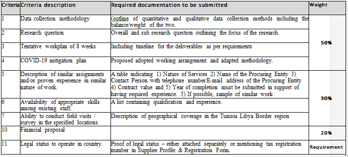 • Incorporate, as available, existing relevant studies and reports on the border between Tunisia and Libya that have identified sustainable livelihood opportunities and community needs into the socio-economic assessment.