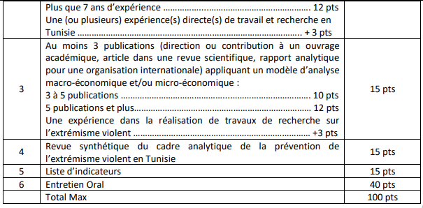 Dans la situation où le/la consultant.e analyste décide de sous-traiter à un.e assitant.e, les connaissances linguistiques (maîtrise du français et de l’arabe) seront considérées au niveau de l’équipe, et non pas au niveau des CV individuels.