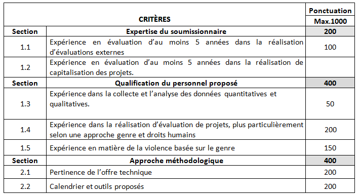 L’offre du consultant sera examinée en suivant les critères ci-dessous :