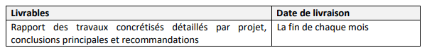 Le consultant devra assister l’équipe de projet dans l’accompagnement des entrepreneurs dans la concrétisation de nouvelles opportunités d’affaires dans les régions ainsi que d’assurer la qualité d’exécution du projet en intégrant les leçons apprises, les politiques et les meilleures pratiques et en mettant en place des systèmes et mécanismes appropriés d’exécution et de monitoring