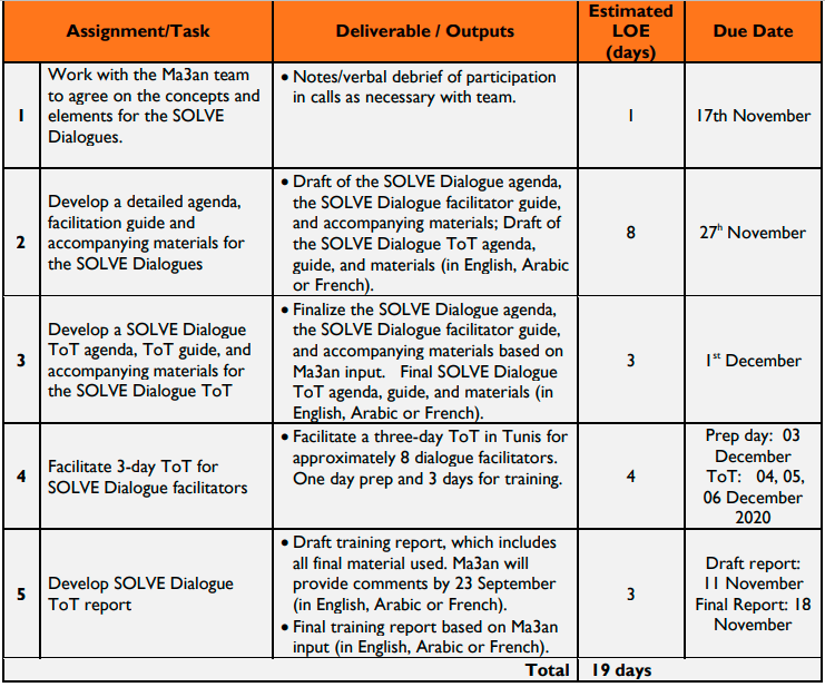 This consultancy is a 19-day assignment starting 17 November 2020 and ending December 18th, 2020.