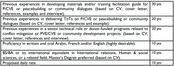 The consultant will be selected based on the following 100 pts criteria: