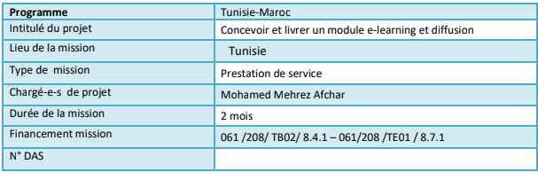 • Expérience de pilotage d’un projet e-Learning en arabe pour des populations non familières avec les nouvelles technologies d’Information et de Communication.