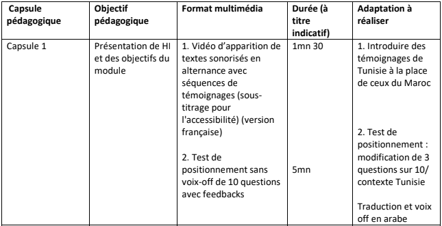 Objectif 1/ L’adaptation et la traduction en arabe de modules de e-learning existants, développés au Maroc en langue française