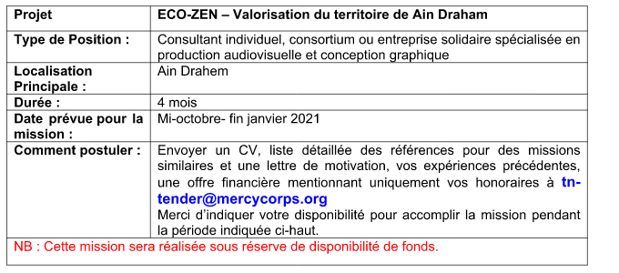 - 06 capsules vidéo (de 2’ à 2’30 maximum chacune). Chaque capsule présentera une histoire de succès ou une initiative soutenue par le projet et présentera la valeur ajoutée apportée par le projet. Les initiatives ciblées sont essentiellement des initiatives économiques individuelles ou collectives, des initiatives de services ou des initiatives associatives ou des dynamiques de collaboration soutenues par le projet. La version originale sera réalisée en arabe avec une traduction en langue des signes. Deux versions seront sous-titrées (une en français et une en anglais). Les capsules seront livrées avec l’ensemble des documents originaux (Rushes). L’identification des initiatives qui seront valorisées sera réalisée par l’équipe de projet. Le contenu des capsules (scénarios, choix des sites et des plans, …sera développée et proposé par le prestataire et validé avec l’équipe du projet).