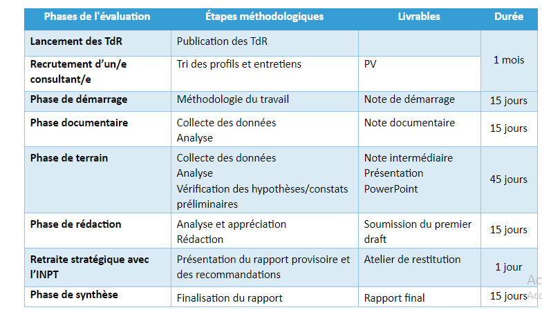 • Chronogramme de l’évaluation