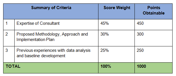 Upon the advertisement of the Procurement Notice, qualified consultants will be expected to submit both the Technical and Financial proposals. Accordingly, the consultant will be evaluated based on a Cumulative Analysis per the following conditions: