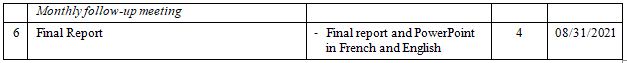 The Consultancy will consist of a maximum of 39 working/billing days (1 day = 8 hours) between February 15 and August 31, 2021.