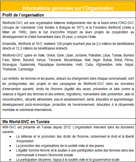 Lieu de travail: Tunis (La Marsa) avec déplacements dans les autres régions de la Tunsie à prévoir