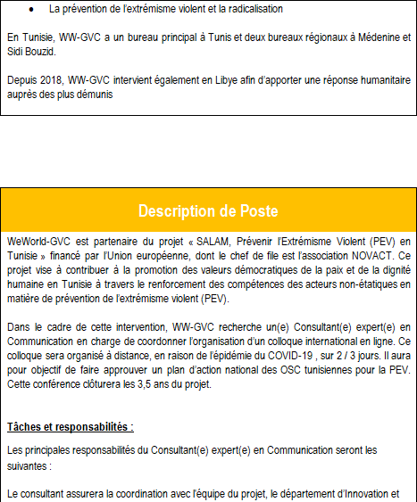 Consultant(e) Expert(e) en Communication – WeWorld-GVC Retour vers les opportunités