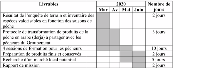 Le (a) consultant (e) sera amené à sensibiliser les pêcheurs sur les aspects de la valorisation des produits de la pêche appliqués à la pêche artisanale à travers l’apprentissage de techniques de conservation des poissons.