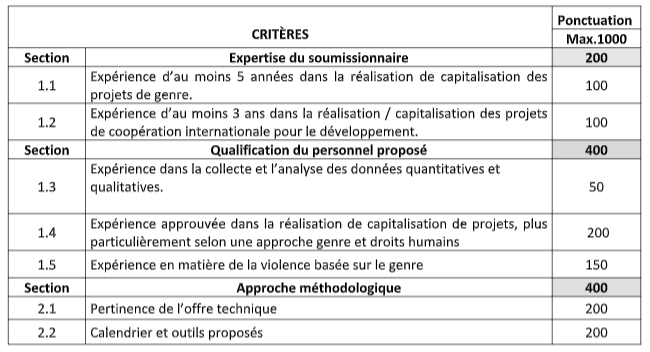 L’offre du consultant sera examinée en suivant les critères ci-dessous :