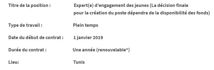 • Familiarité avec le milieu associatif en Tunisie en particulier les associations regroupant les jeunes.