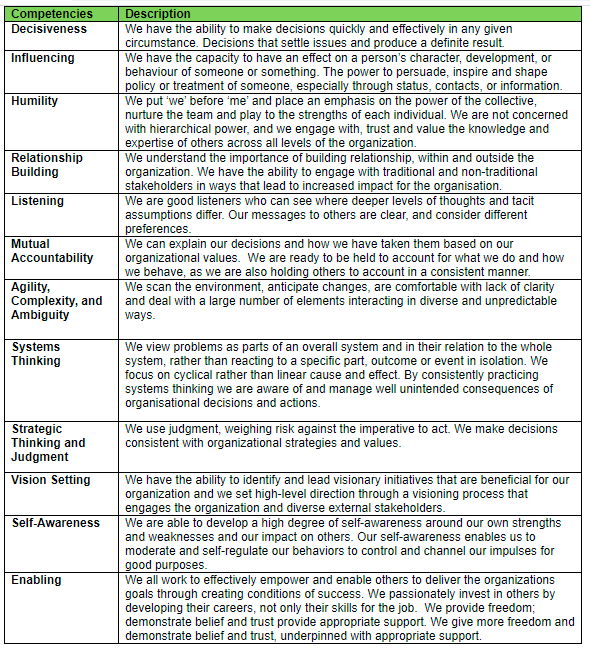 Behavioural competencies (based on Oxfam’s Leadership Model)
