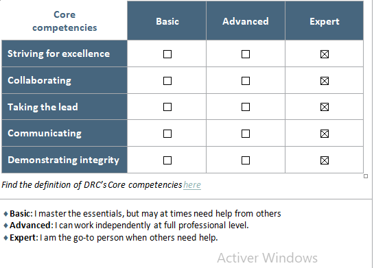 - Assist managers and staff in understanding and using DRC’s performance appraisal tool;