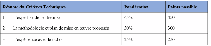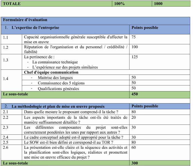 Dès l’annonce de l’avis de marché, les entreprises de communication qualifiées devront soumettre à la fois les propositions techniques et financières. En conséquence, l’entreprise sera évaluée sur la base d’une analyse cumulative selon les conditions suivantes :
