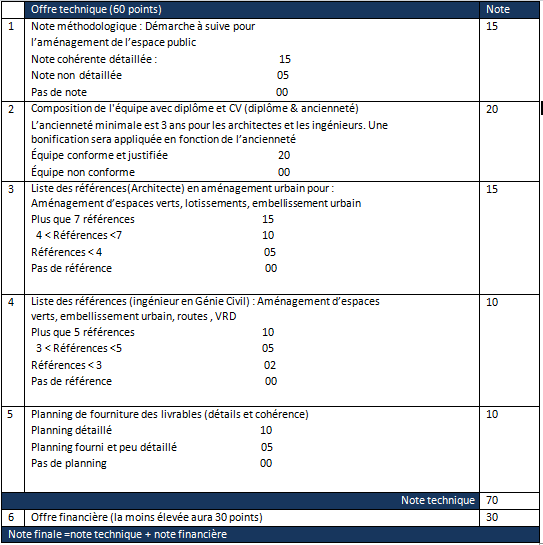 L’offre technique sera évaluée selon le barème suivant :