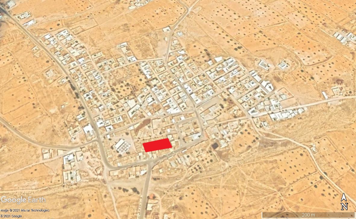 Figure 1 : Vue satellite de la place au sein de l’arrondissement municipal de Ksar Jedid (source Google map 2021)