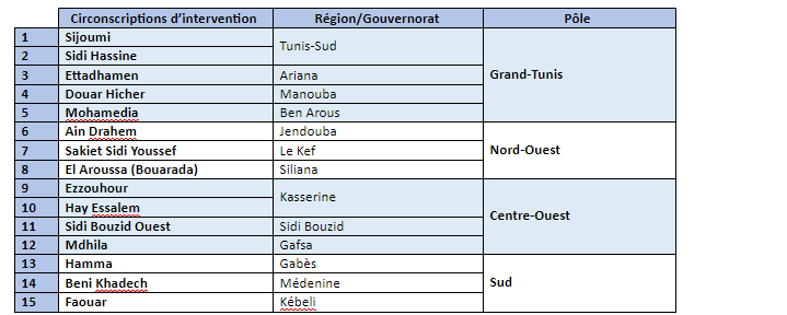 Lieu : Les 4 pôles du projet (Tunis, Nord-Ouest, Centre Ouest, Sud)