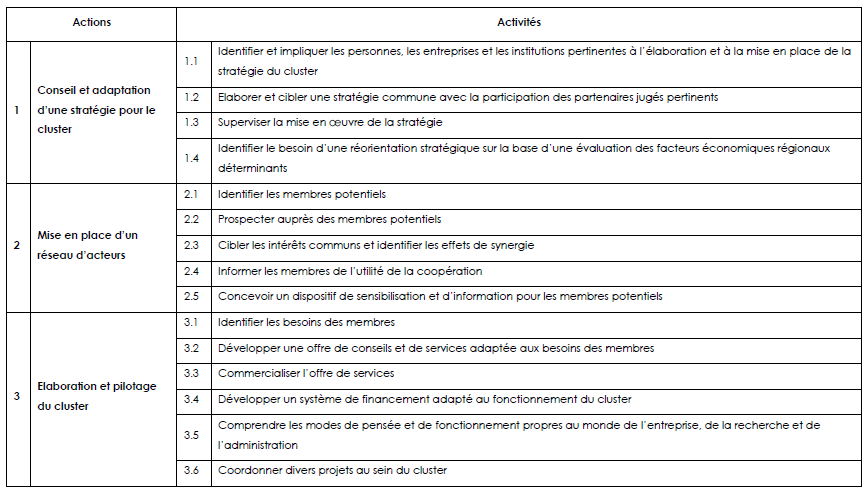 A travers la mise à disposition de ses infrastructures et de ses services, y compris ceux d’un animateur pour ce cluster, cette structure assurera l’appui nécessaire à travers :