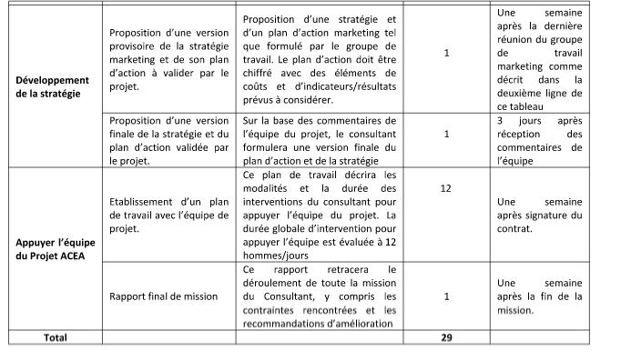 Appuyer l’équipe du Projet ACEA : Appuyer l’équipe du projet en ce qui concerne le suivi avec les clients internationaux et l’adaptation des résultats de toutes les activités du projet au contenu de la stratégie marketing.