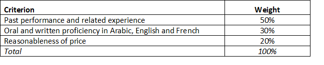 Consultants will be evaluated and ranked by committee according to the evaluation criteria below, with a total maximum point value of 100. Consultants will first be evaluated and scored from a technical standpoint. Consultants that are considered to be technically qualified shall then be evaluated in terms of cost reasonableness of their daily rate. The contract shall be issued to the consultant with the highest combined technical and cost score.
