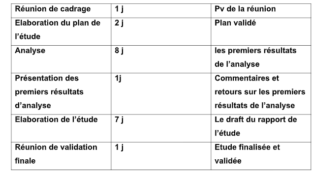 La durée de la mission s’étale sur 20 jours à partir de la signature du contrat :