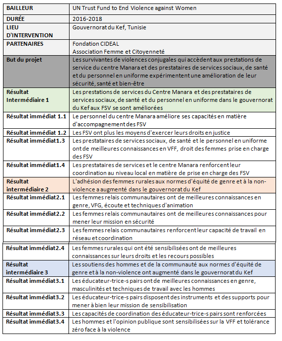 Le projet « MANARA » financé par le Fonds d’Affectation spéciale des Nations Unies pour l’élimination de la violence à l’égard des femmes (UNFT), constitue une seconde phase de leur intervention dans le Gouvernorat du Kef. Le projet initié en 2016 prendra fin en février 2018.